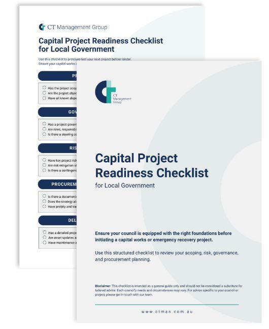 Whether you’re initiating a new capital works program or preparing for an emergency recovery project, this checklist will help your organisation improve decision-making, strengthen compliance, and reduce delivery risk.